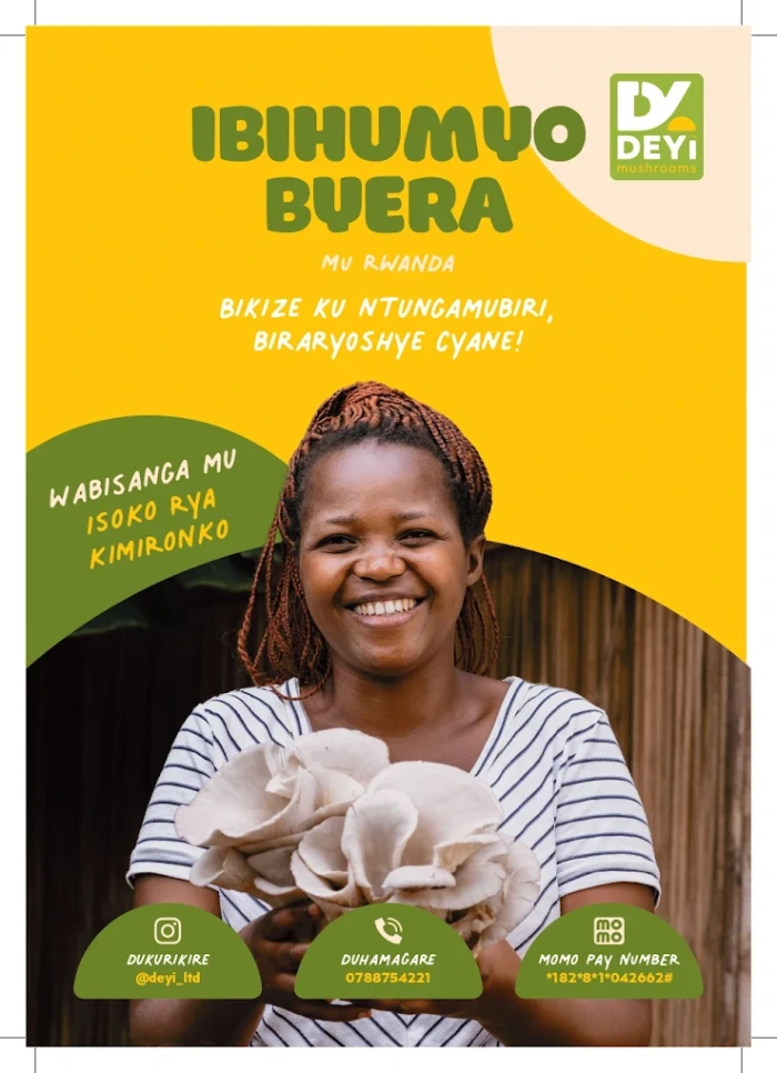 DEYI Ltd is a Rwandan company specializing in sustainable mushroom production and processing using Juncao Technology. We grow fresh and dried mushrooms, mushroom powder, and nutrient-rich animal and fish feed. Our work supports food security, youth employment, and environmental sustainability, while empowering local farmers with modern, eco-friendly farming practices. DEYI Ltd is committed to quality, innovation, and community impact, building a model for sustainable mushroom development and export in Rwanda and East Africa.